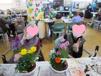 垂水デイサービスではガーデニングレクを含めて、材料費無料でレク作品をお持ち帰り頂いております。